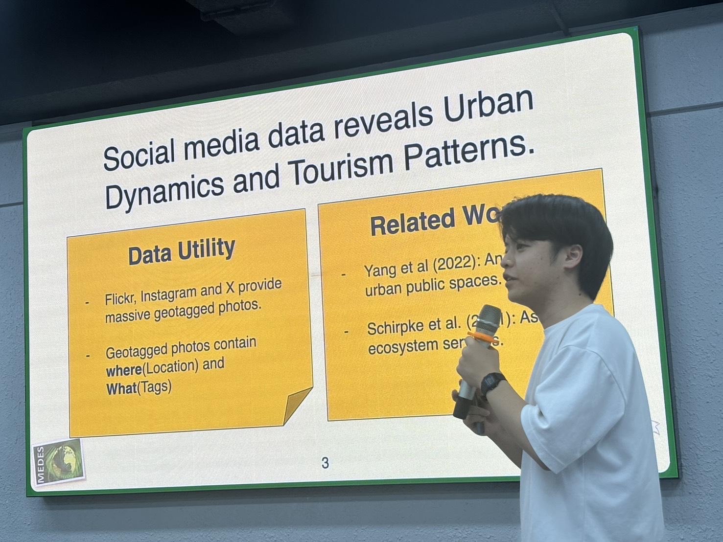 横山研究室所属の添田英紀が、MEDES2025にて、重力モデルと絵文字を用いたマーカークラスタリングを拡張した可視化手法を提案する研究発表を行い、その後、質疑応答を行いました。